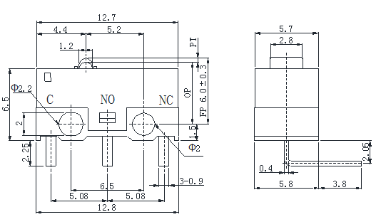 外形尺寸:12.8*5.8mm